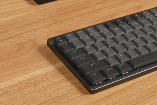 首先是大家最好奇的一點:它憑什么沒有聲音?羅技MX Mechanical系列采用的是機(jī)械矮軸,矮軸的好處就是在保留了機(jī)械鍵盤反饋感的同時,盡可能地減少噪音。在羅技官方支持的青紅茶軸內(nèi),你只要選擇了茶軸和紅軸,打字時的噪聲都是在一個非常可控的范圍內(nèi)的。輔以弧面雙色鍵帽和鋁制金屬磨砂面板,質(zhì)感很突出,商務(wù)感拉滿。